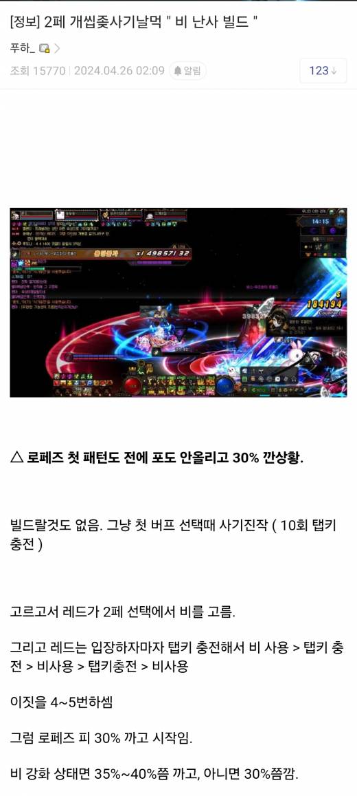 - [팁과 정보] 어제자 로그 안개신 레이드 8인쩔 2인 포지...