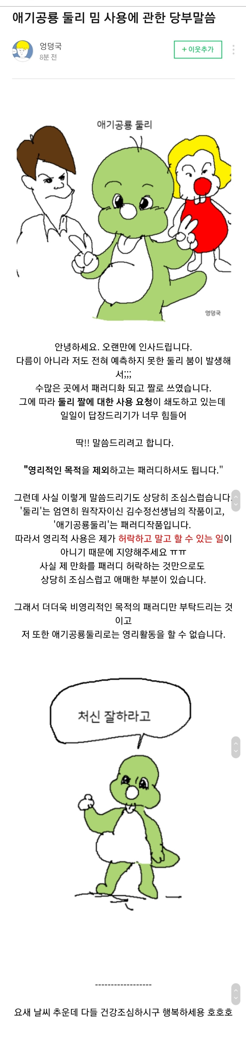 [유머] 엉덩국) 애기공룡 둘리 밈 사용에 대해