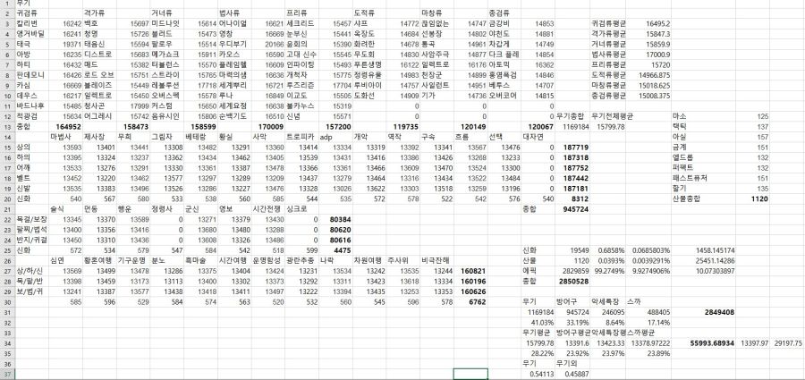 각 분류별로 종류 수만큼 나눠 개별 평균값을 구해도 무기가 드랍될 확률이 더 높다.