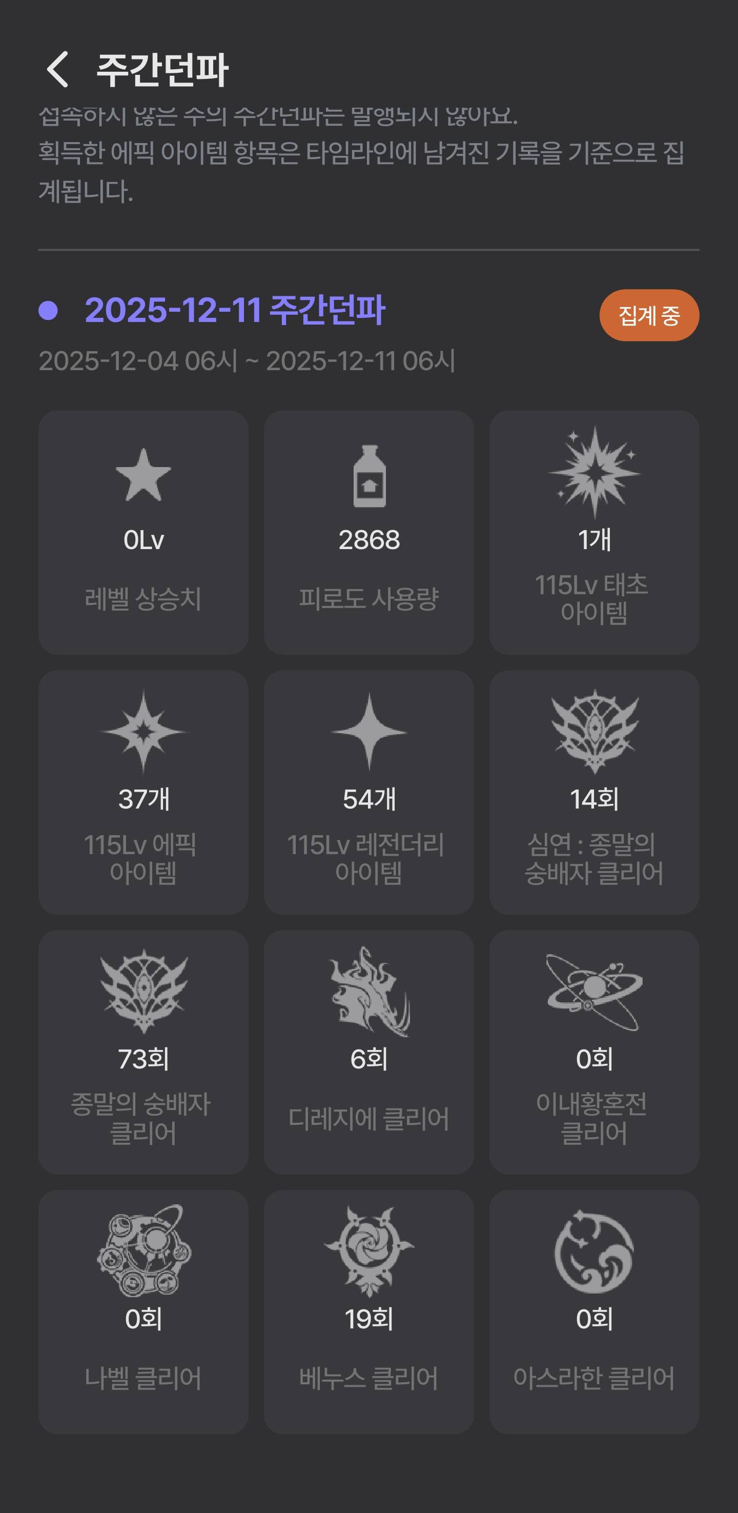 250헌터 비질로 클했네요. 나머진 매칭이에요.