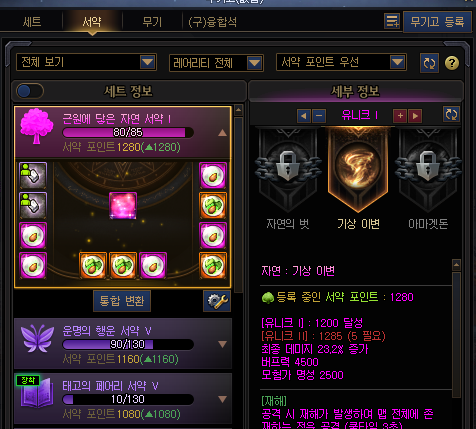 (안개서약은 일부러 안 쓰는 중, 서약 유닉 이상 뜬 세트로 갈것)