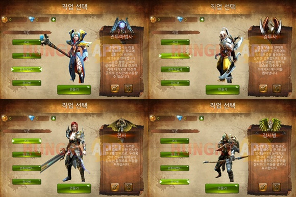 던전헌터4는 전사/검투사/전투마법사/감시병 총 4가지의 직업이 등장한다.