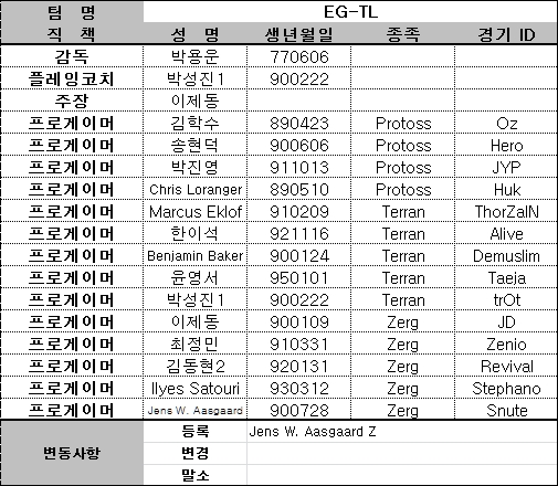 한국e스포츠협회는 2일 프로리그 5월 로스터를 발표했다. 이에 따르면 CJ엔투스에 최성일(프)과 이재선(테)이 등록됐으며, EG-TL에는 옌스 아스가르트(저) 합류에 눈길을 끌고 있다.