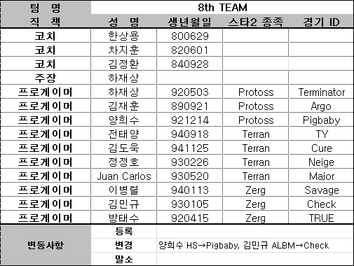 반면 SK텔레콤T1은 권오혁을 말소시켰으며, 제8게임단 양희수와 김민규는 게임 닉네임을 각각 Pigbaby와 Check로 변경했다.
