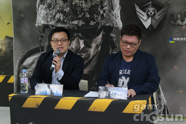 ▲ 넥슨의 이정배 실장(좌)과 정찬선 팀장이 '워페이스'의 상용화 정책에 대해 발표하고 있다.