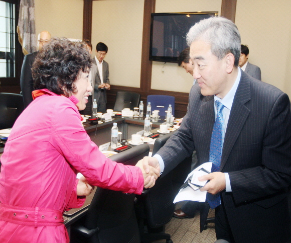 ▲ 유진룡 장관(좌)과 남경필 한국게임산업협회 회장이 인사를 나누고 있다.