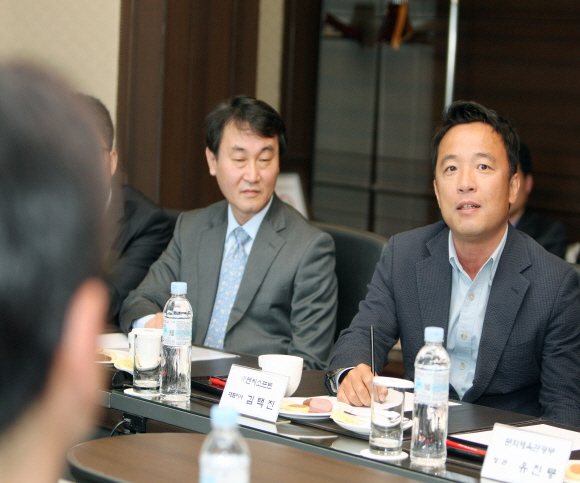 ▲ 유진룡 장관이 게임업계 대표 간담회에 참석해 의견을 나누고 있다.