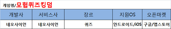 이번에 소개할 게임은 네오사이언사가 구글마켓과 앱스토어에 25일 동시에 발매한 '모험퀴즈킹덤'이다. 이 게임은 일본에서 현재 서비스되고 있으며 여타 다른 카드게임들과는 다른 방식의 던전 RPG다.