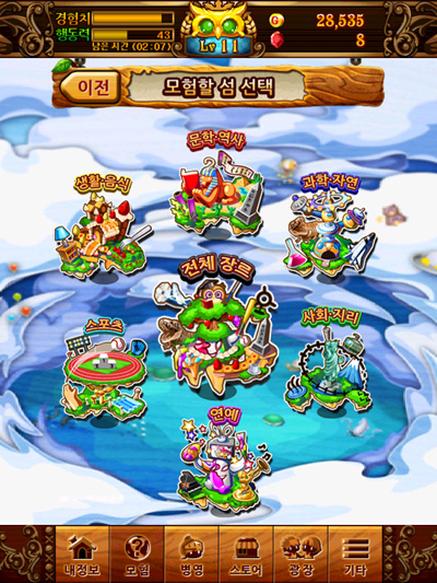 ▲과학,자연 ▲사회,지리 ▲연예 ▲스포츠 ▲생활,음식 ▲전체 장르로 구성되며 자신있는 장르부터 도전하는 것을 추천한다.