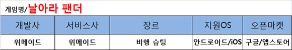 위메이드엔터테인먼트(대표 김남철, 남궁훈)가 쉬운 조작과 귀여움으로 똘똘 뭉친 캐주얼 비행 슈팅 '날아라팬더'를 선보일 예정이다.