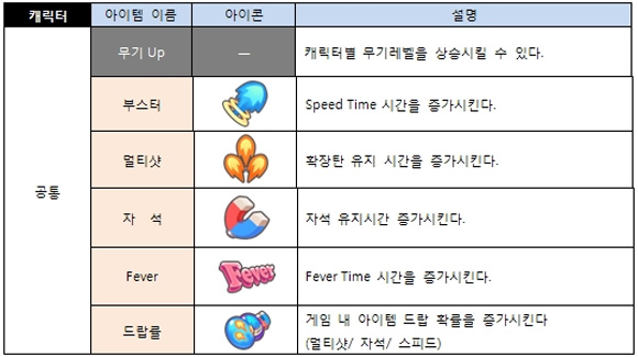 펫이 지원하는 버프는 피버타임, 멀티샷, 부스터, 자석 등 기본적인 패시브 스킬의 지속 시간을 더욱 길게 늘려주는 것이다.