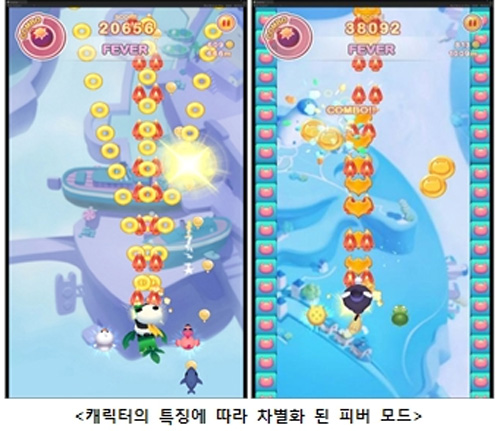 10단계까지 콤보를 유지하면 피버모드가 발동이 되는데, 피버모드는 일정 시간 동안 캐릭터별로 특수 공격을 할 수 있다.