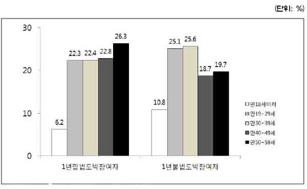 ▲ 연령대별 불법 도박 참여자 비율. 10대 도박 참여자가 10.8%나 된다.
