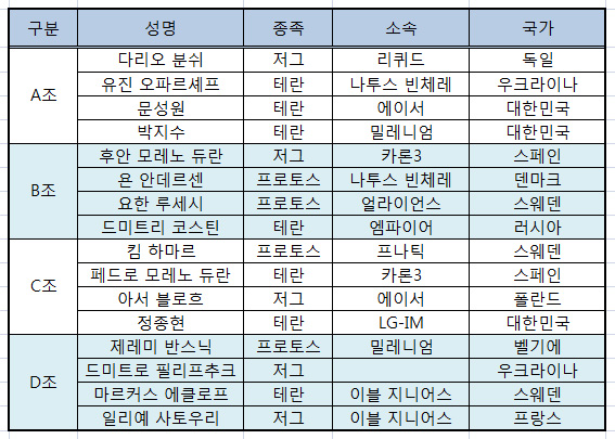 한편 이들의 경기는 15일 새벽 1시(한국시각)부터 18일까지 나흘간 진행될 예정이다. 한국 선수들이 선전하며 새벽잠을 빼앗긴 팬들의 성원에 보답할 수 있을지 관심이 집중될 전망이다.