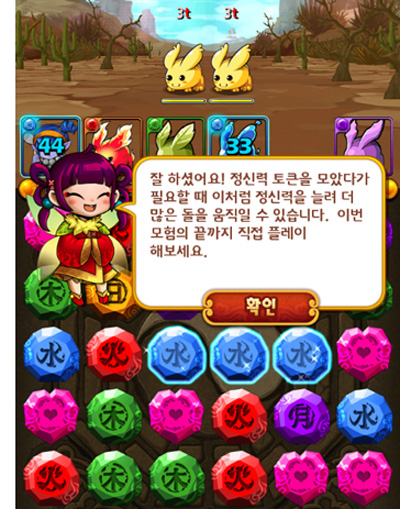 친절한 튜토리얼을 따라 게임 조작법을 차근차근 익혀보았다. 인터페이스를 봐도 알 수 있듯이 일반적인 퍼즐게임과 비슷하다.