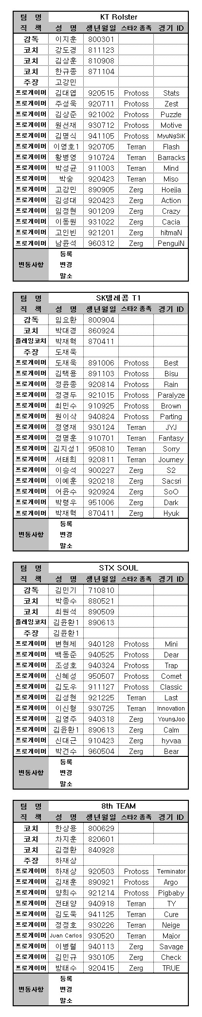 ◆ SK플래닛 스타2 프로리그 12-13 6월 로스터