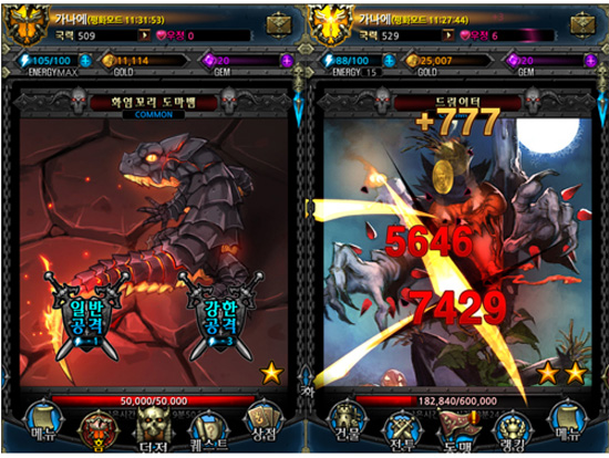 이 게임을 처음 접했을 때 너무 낯설다는 느낌을 받았다. 상하좌우 화면 전체에 배치된 아이콘은 상당히 어지럽게 느껴졌지만 '던전' '퀘스트' '영웅육성' 세 메뉴를 위주로 사용하다보면 금방 적응이 가능했다.