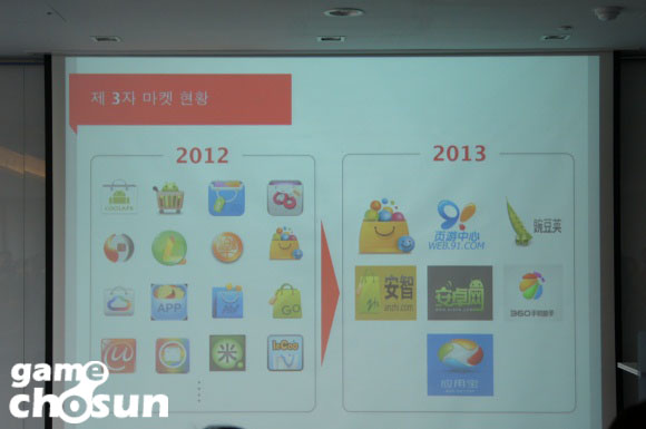 덧붙여 "특히 3자 마켓 가운데 91닷컴은 하드코어 이용자들이 많고, 360에는 캐주얼게임이 강세를 보이는 등 각각의 마켓들의 특징이 다르기 때문에 게임의 특성에 맞는 마켓들을 활용할 것을 추천한다"고 첨언했다.
