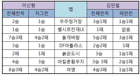 ◆ 이신형-김민철 결승 맵별 전적