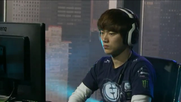 김동현은 저글링 다수를 이끌고 입구가 허술한 틈을 타 정면돌파를 시도했다. 하지만 송현덕이 본진으로 오르는 진입로를 역장으로 막은 뒤 앞마당 연결체에 광자과충전을 시전해 저글링을 압살했다. 뒤이어 공격해온 맹독충 역시 수정탑 파괴에 대부분 허비돼 송현덕이 막아낼 수 있었다.