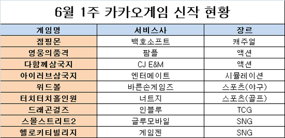 6월 1주 카카오 게임하기 플랫폼에 출시된 게임은 ‘종합선물세트’로 압축된다.