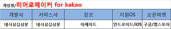 히어로메이커는 '히어로리그' 라는 명칭으로 출시됐던 게임을 새롭게 리메이크 후 카카오톡과 연동해 선보이게된 게임이다.