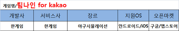 한게임의 야구게임 '팀나인 for Kakao'가 출시됐다.