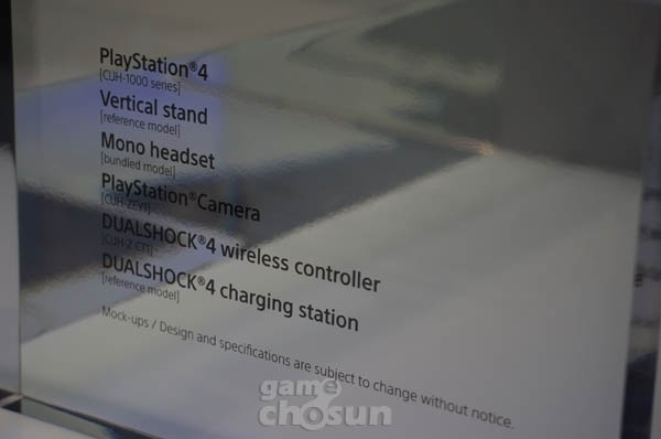 PS4의 외형은 기존 PS2를 연상시키는 모습에 단순하면서도 깔끔하단 느낌을 줘 부스투어 기자단들은 감탄을 자아냈다. 부스투어에서는 본체(CUH-1000 시리즈) 외에도 수직 스탠드와 모노 헤드셋, 플레이스테이션 카메라, 듀얼쇼크4 무선컨트롤러, 듀얼쇼크4 충전기 등이 함께 공개했다.