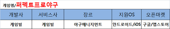 '퍼펙트프로야구'는 게임빌에서 개발하고 서비스하는 모바일 야구게임이다.