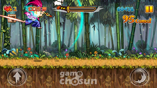 ‘다같이칼칼칼’은 횡스크롤 화면에서 장애물을 피하는 점프 외에도 적을 타격하는 공격 요소가 더해져 있다. 이는 앞서 출시했던 ‘오즈더러시’에서도 비슷한 방식이지만 칼칼칼은 적이 근처까지 왔을 때 타격하면 퍼펙트와 함께 콤보가 계산된다는 점에서 좀 더 정교한 플레이를 요구하고 있다.