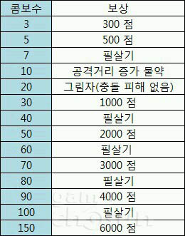 ▲ 콤보수치에 따른 추가 보상