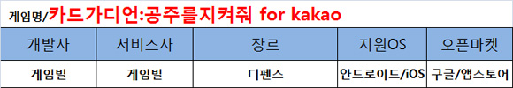 디펜스계의 최고를 꿈꾸며 게임빌에서 신작 디펜스게임을 출시했다. 그 주인공은 바로 '카드가디언:공주를지켜줘' for Kakao'.