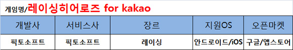 픽토소프트가 신작 모바일게임 '레이싱히어로즈 for kakao'를 출시했다.