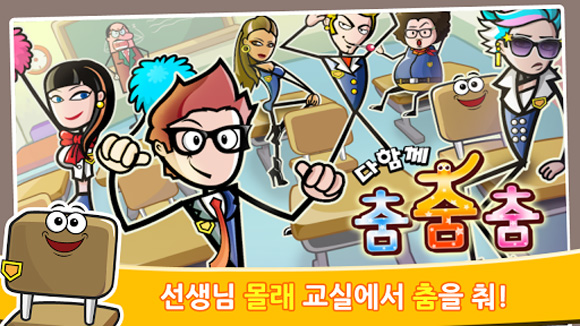 게임을 살펴보면 수업을 진행하는 선생님을 피해 학생들이 춤을 춘다는 설정으로 원터치로 가능한 쉬운 조작법과 8개의 캐릭터와 다양한 코스튬이 눈길을 끈다.