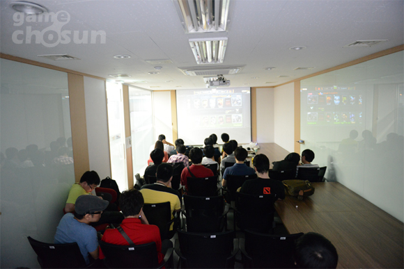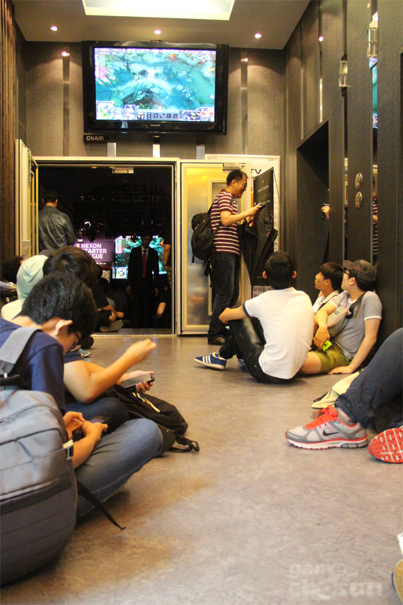 이미 마련된 자리가 만석이 된 이후에도 팬들이 바닥에 앉아 외부 모니터를 통해 경기를 관람하고 있으며 휴가를 나온 군인까지 보여 '도타2'에 대한 국내 팬들의 뜨거운 관심을 확인할 수 있다