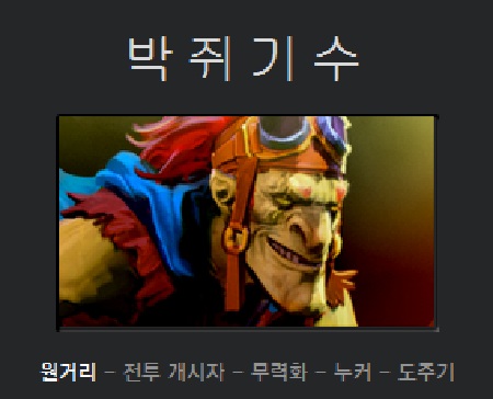 박쥐기수는 각종 대회 선택금지율 지표에서 100%에 가까운 확률로 당당히 1위를 차지할만큼 현 도타에서 가장 '핫'한 영웅이다.