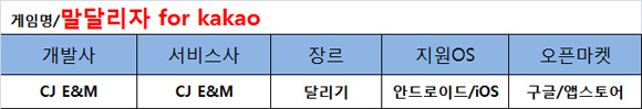 넷마블에서 신작 모바일게임 '말달리자'를 출시했다. 이 게임은 정면으로 다가오는 마차, 황소, 통나무 등 다양한 장애물들을 점프하거나 좌,우로 피하며 악당을 처치하는 것이 주 목적이다.