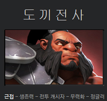 도끼전사는 지난 전투개시자 편에서도 소개된 적이 있는 영웅으로 도타2에서 유일하게 다수의 적을 도발해 자신을 공격하게 할 수 있는 것이 큰 장점이다.