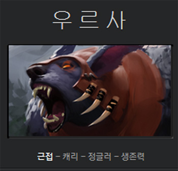 우르사는 '분노의발톱' '제압' '대지충격' '격노' 등과 같은 스킬이름에서 알 수 있듯이 저돌적인 영웅이다.