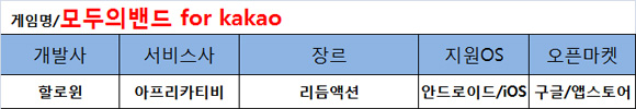 아프리카TV는 자사가 서비스하고 할로윈이 개발한 모바일 리듬액션게임 '모두의밴드 for Kakao(이하 모두의밴드)'를 카카오 게임하기 플랫폼을 통해 선보였다.