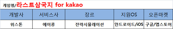 '라스트삼국지 for Kakao(이하 라스트삼국지)는 모바일게임 전문 퍼블리셔 에이콩이 야심차게 내놓은 삼국지게임이다.