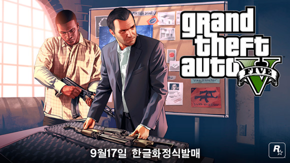 'GTA5'는 폭력게임의 대명사 'GTA' 시리즈의 최신작으로 미국 로스엔젤레스를 모델로 삼은 가상도시 '로스 산토스'에서 벌어지는 이야기를 그리고 있다. 이 게임은 오는 9월 17일 한글 자막으로 국내 발매될 예정이다.