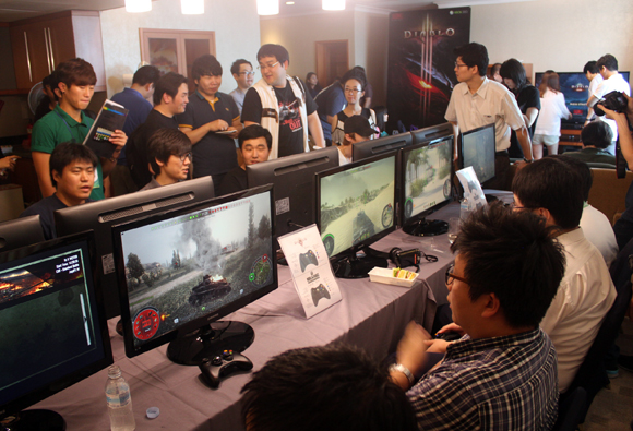한국마이크로소프트는 28일 서울 삼성동 오크우드 코엑스센터에서 X박스360용 '디아블로3'와 '월드오브탱크: X박스에디션'을 국내 최초로 공개했다.