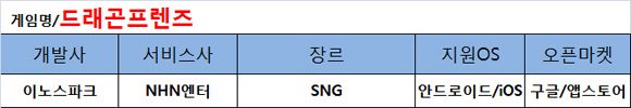 '드래곤프렌즈'는 출시 전부터 룰더스카이 제작진이 개발해 큰 이슈가 됐다. 또한 홍수처럼 쏟아지는 카카오톡 연동이 아닌 한게임 자체 계정 로그인을 통해 게임을 즐길 수 있는 것도 눈에 띈다.