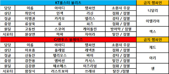 KT불리츠(이하 불리츠)는 5일 용산 e스포츠 상설 경기장에서 열린 '리그오브레전드 월드챔피언십 한국 대표 선발전' 준플레이오프 3세트에서 CJ블레이즈(이하 블레이즈)를 상대로 승리하며 플레이오프로 진출했다.