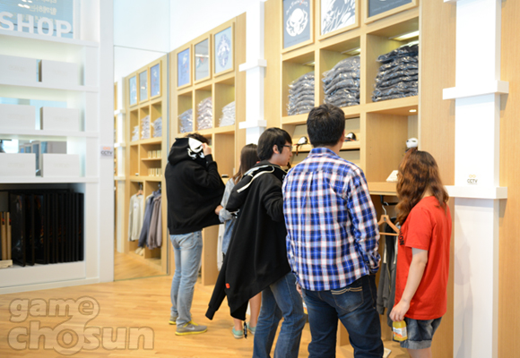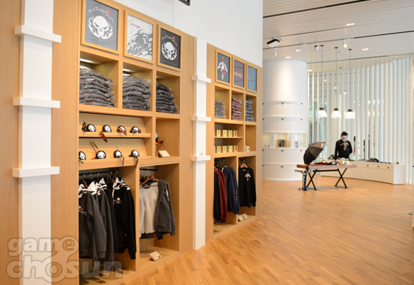 1층에 위치한 브랜드샵에서는 엔씨소프트와 관련한 각종 물품을 주제별로 팔고 있는데 현재는 MMORPG '리니지' 15주년 기념 상품을 판매 중이다.