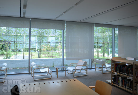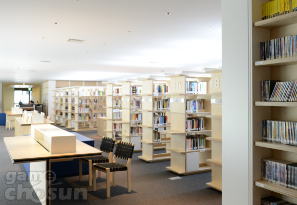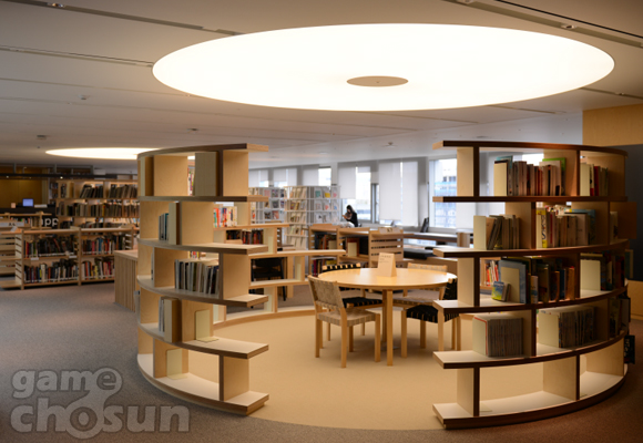 12층에 위치한 도서관은 약 2만여 권의 서적과 각종 영화와 게임 타이틀 등 멀티미디어 관련 자료는 3천여 개가 준비됐다. 중앙에는 시원하게 뚫린 하늘을 볼 수 있는 하늘정원이 있다.