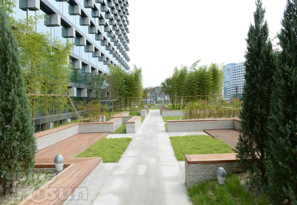 중앙 정원은 N동과 C동이 만날 수 있는 장소 중 하나이며 천정은 3300여 개의 LED 전구로 꾸며져 밤에는 아름다운 경광을 연출한다.