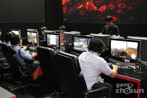 워게이밍 전통답게 부스 앞에는 어김없이 실물 전차가 세워져 있었으며 부스걸이 상시 대기하고 있어 게이머들의 눈길을 끌었다.