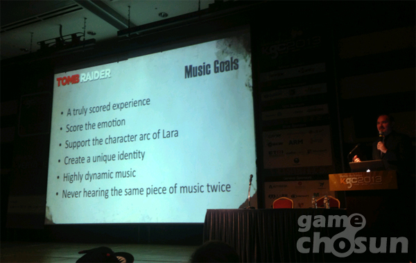 25일 서울 코엑스에서 진행된 '한국 국제 게임 컨퍼런스2013(KGC2013)'에서 '툼레이더:부스트'의 음악을 담당한 알렉스위머 음향 감독이 게임 음악에 대한 이야기를 전했다.